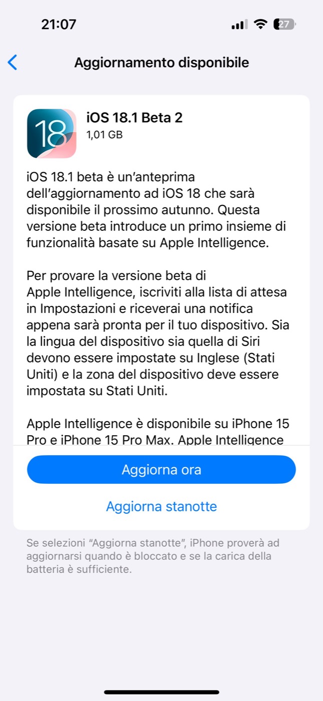 iOS 18.1 beta 2 è la versione che include soltanto alcune delle funzionalità di Apple Intelligence ma che, ricordiamo, non funzionano nè in Cina nè in Europa quindi è del tutto inutile installare questa versione per noi italiani.